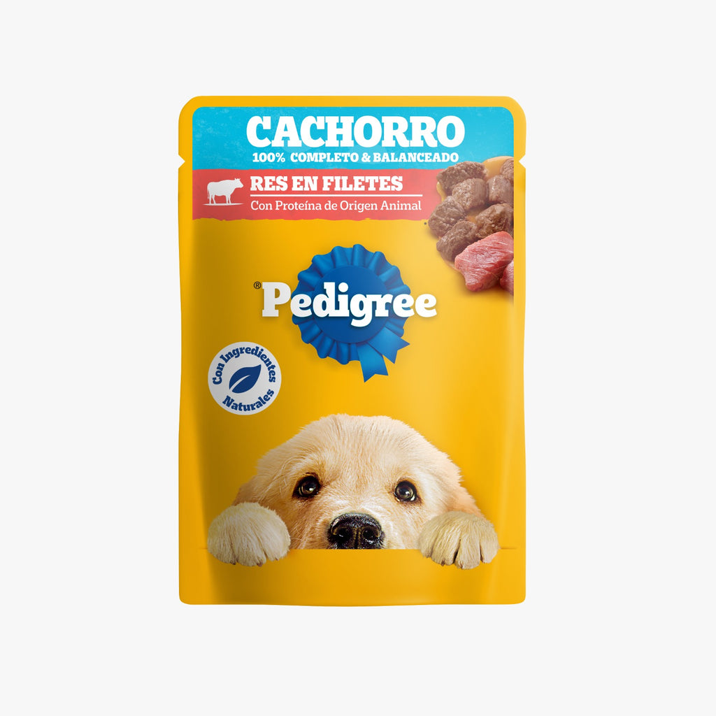 PEDIGREE® Pouch Cachorro Carne se elabora con productos frescos bajo un proceso de cocción lento al vapor, viene con una deliciosa salsa y se empaca de una forma rápida para conservar su frescura y aroma, brindando a tu perro una sabrosa comida completa y balanceada. Es la mejor manera de alimentar a tu perro ofreciéndole variedad, textura y frescura día a día.