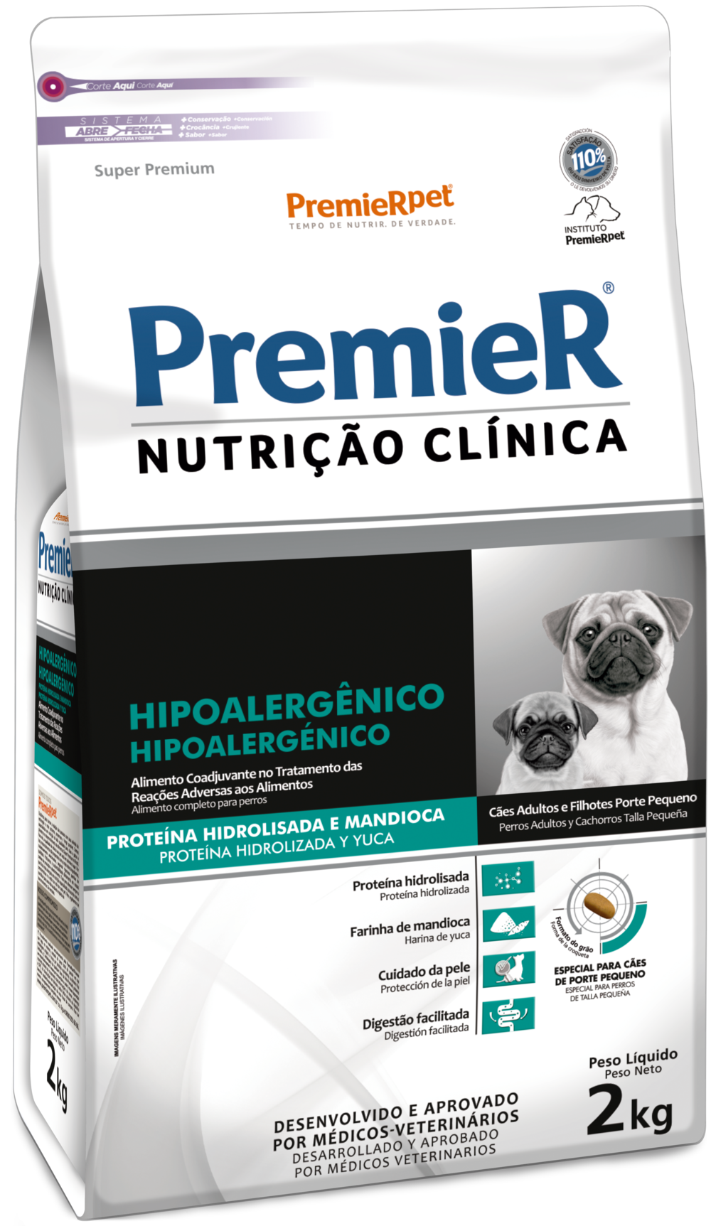 PremieR Nutrición Clínica Hipoalergénico Proteína Hidrolizada y Yuca Perros es un alimento de prescripción indicado para perros adultos y perros cachorros a partir de las 14 semanas de edad y que presenten reacción adversa a los alimentos con manifestación dermatológica y/o intestinal.