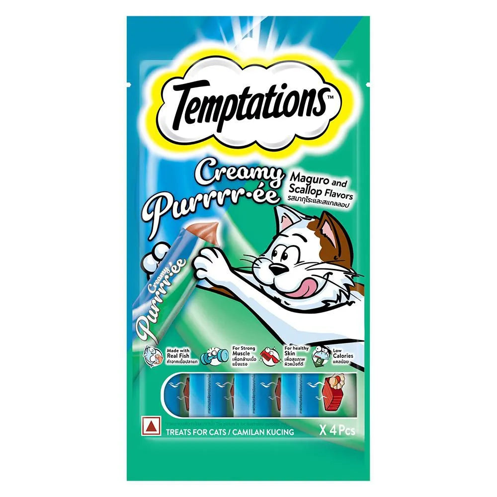 Este snack cremoso combina el sabor suave de la vieira con el toque delicioso del atún, creando una mezcla irresistible para consentir a tu gato. Su textura tipo puré facilita servirlo directamente del sobre, mezclarlo con el alimento o usarlo como premio para reforzar momentos de cariño y conexión.