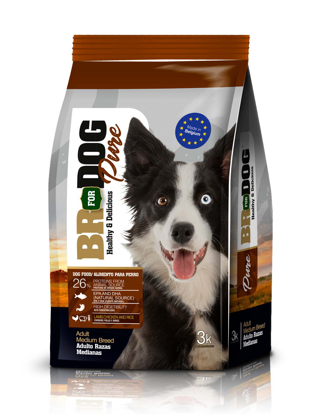 BR For Dog Pure Adulto Razas Medianas es un alimento seco, completo para perros de razas medianas.
