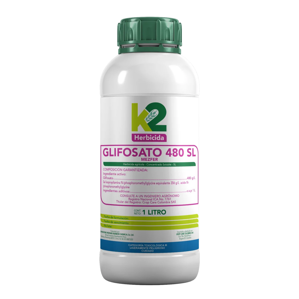 Glifosato 480 SL K2 es un herbicida sistémico no selectivo de amplio espectro, altamente eficaz en el control de malezas de hoja ancha y gramíneas, tanto anuales como perennes. Su formulación líquida soluble (SL) permite una rápida absorción foliar y traslocación en la planta, asegurando la eliminación desde la raíz y evitando la rebrota.
