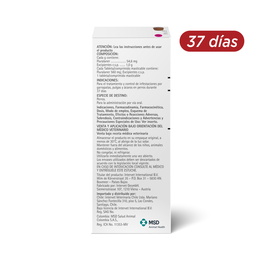 BRAVECTO 37 días (perros de 40 a 56 KG) Antipulgas y garrapatas