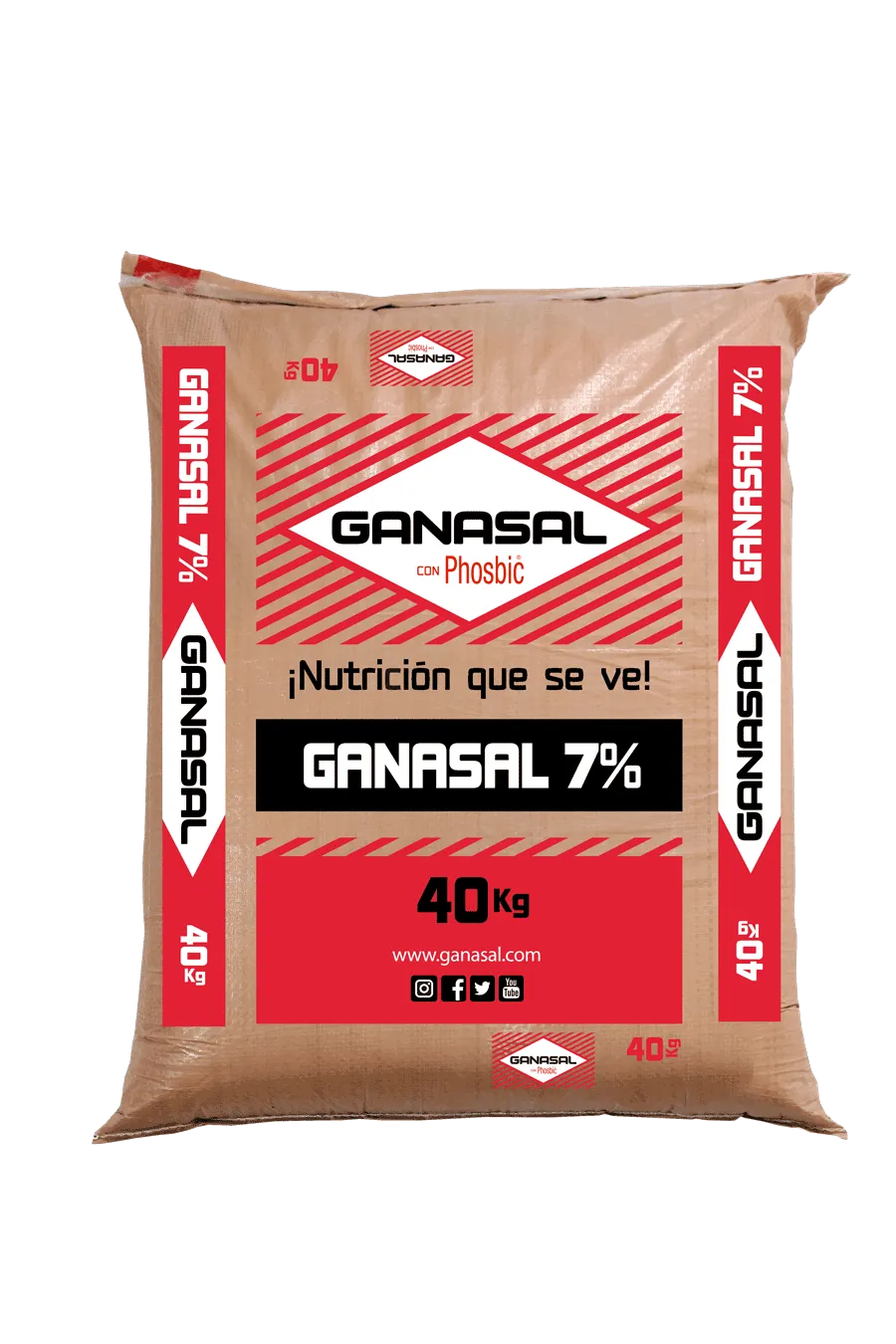 Ganasal 7% Bloque es un suplemento mineral en presentación sólida, formulado para bovinos de carne y leche. Su contenido de fósforo, calcio, sal y minerales esenciales favorece el desarrollo corporal, la producción láctea y el rendimiento reproductivo, ayudando a mantener animales sanos, fuertes y productivos. La presentación en bloque facilita el consumo directo en el potrero, asegurando un suministro constante y práctico.